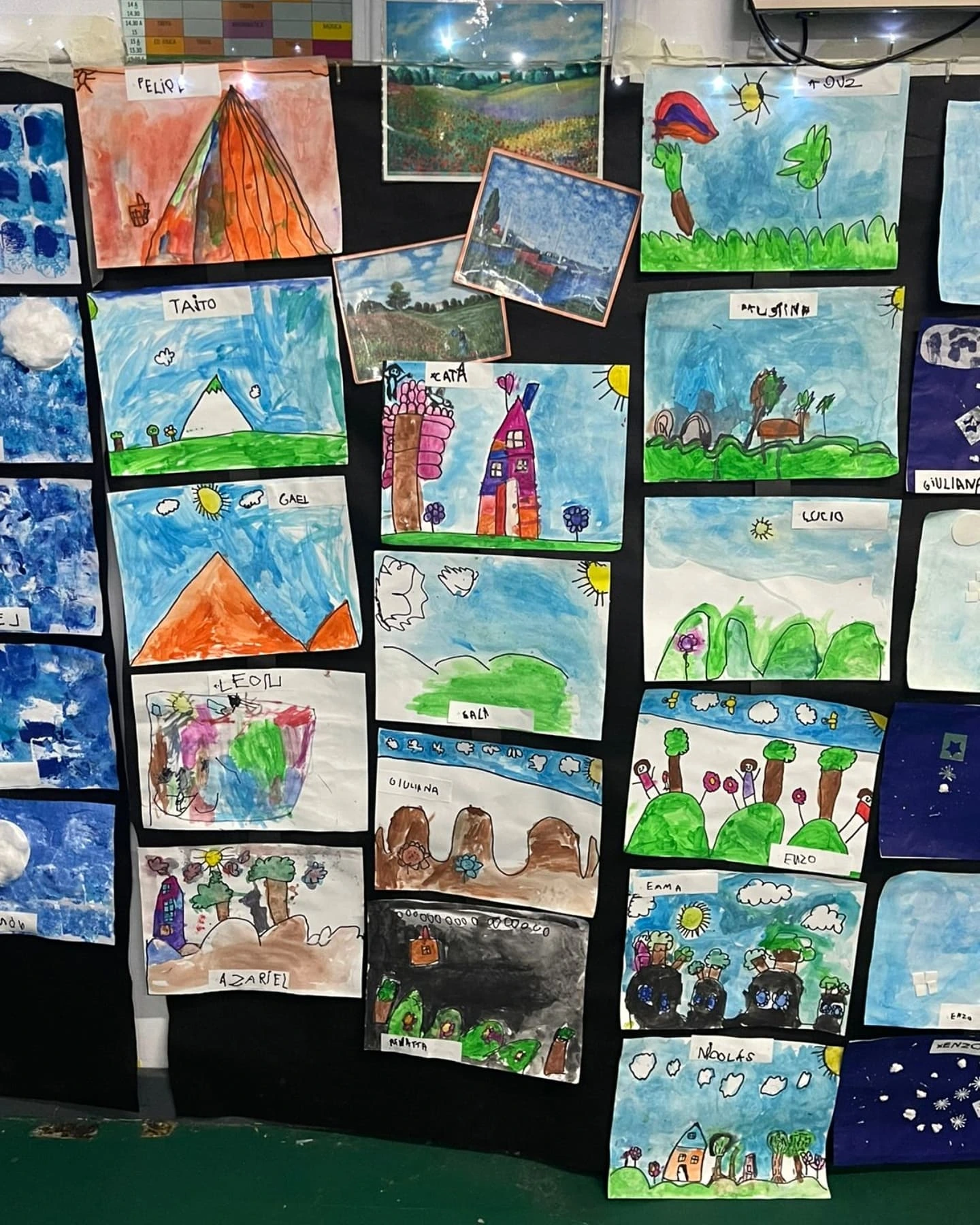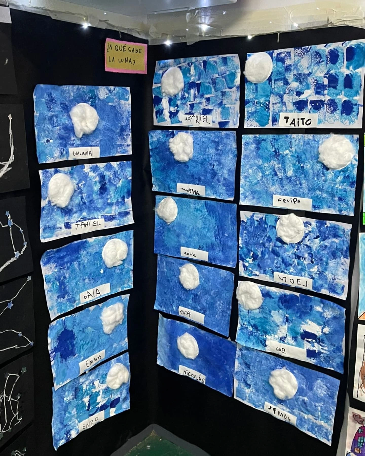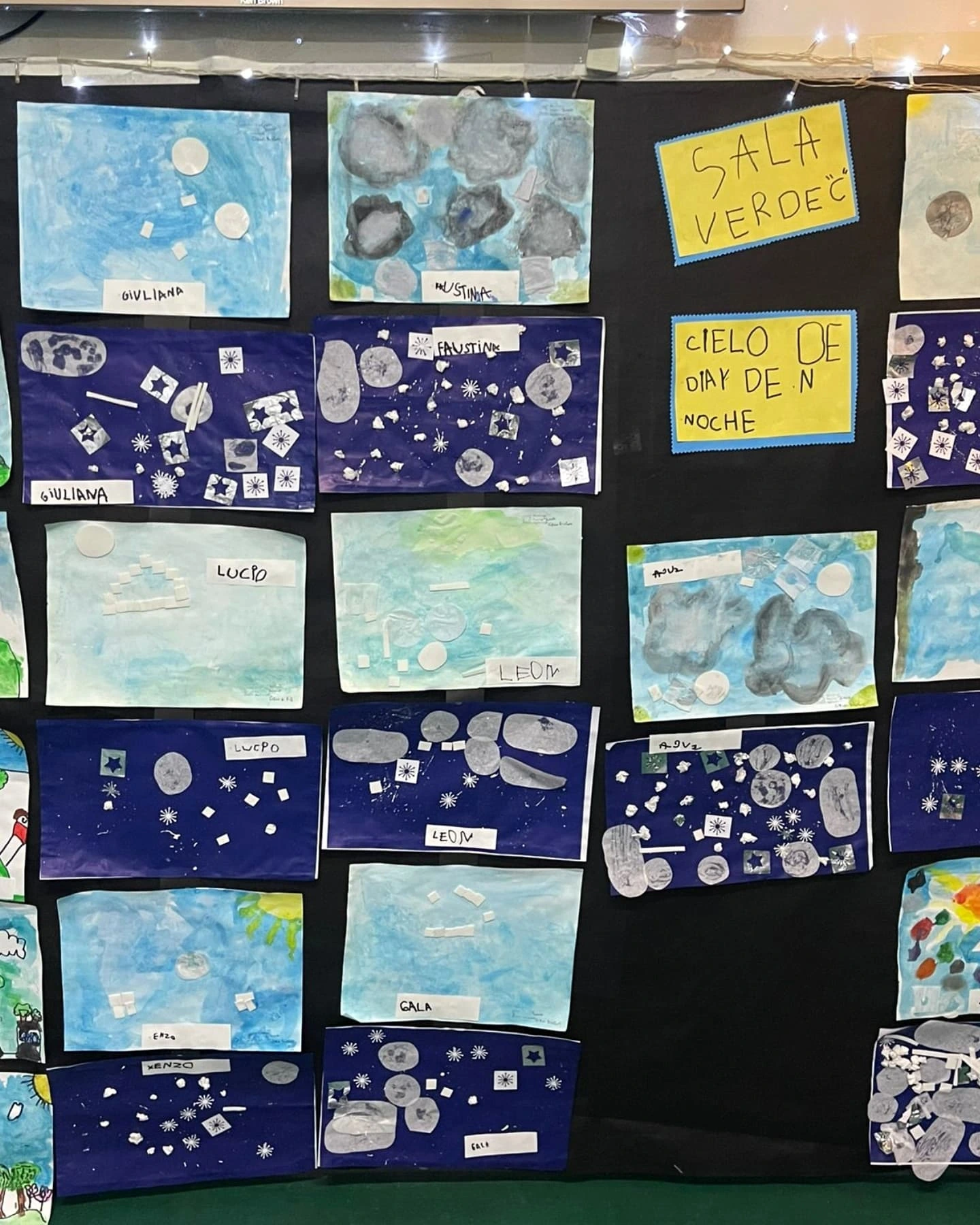 💫 Entre pinceladas, palabras y observaciones, los niños crearon sus propias interpretaciones, regalándonos estas hermosas traducciones de un cielo que es tan único como cada uno de ellos.