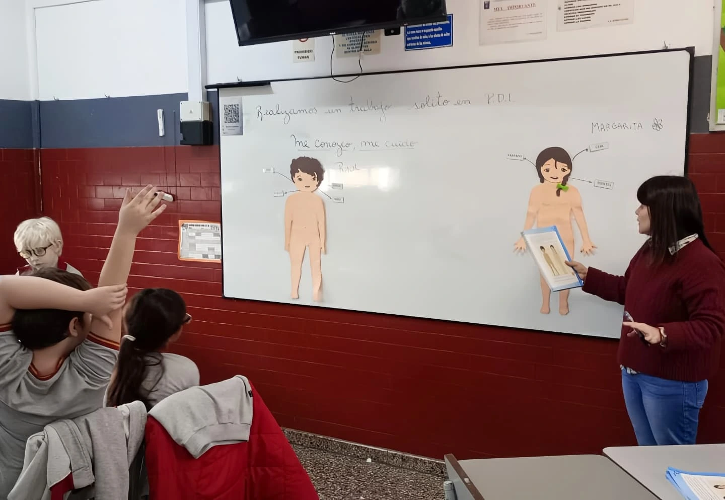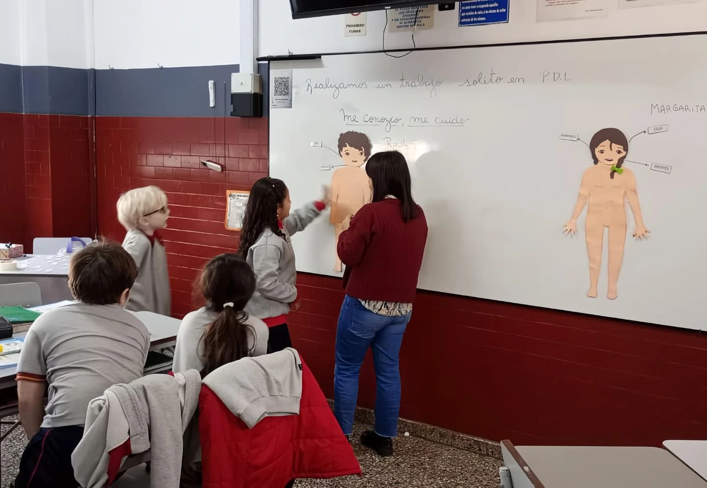 Los alumnos de 2° año de Educación Primaria, acompañados de su docente y la Psicopedagoga, trabajan desde la ESI, las partes y los cuidados del cuerpo.